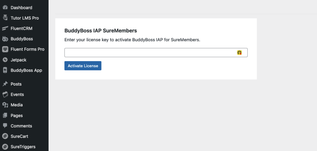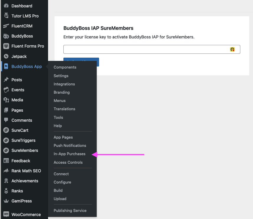 Navigate to the new menu item called “BuddyBoss IAP SureMembers”