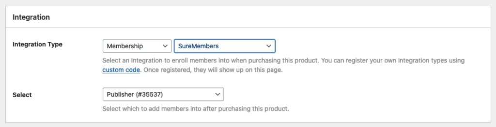 If you have not created an in-app product, you will need to create one. If you already have in-app products, select the product you want to edit and scroll down to the integration section. Now, when you select Membership, you will have SureMembers as an integration option.